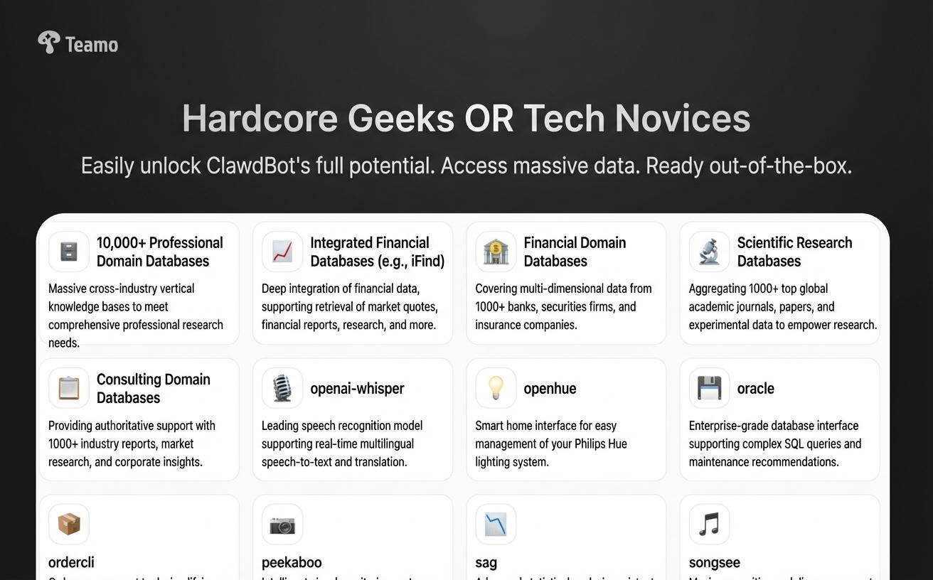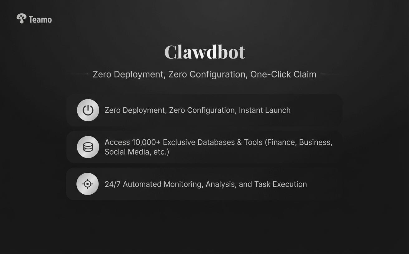 A self-hosted AI assistant designed for privacy and ease of use. Automate your workflows across Discord, Slack, and more. Clawdbot connects to over 10,000 professional data sources—spanning finance, consulting, and market intelligence—to deliver deep research and visualization instantly. Turn raw data into clear, actionable insights without lifting a finger.